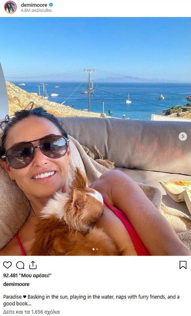 Η Demi Moore συνεχίζει τις διακοπές της στην Ελλάδα: «Παράδεισος»