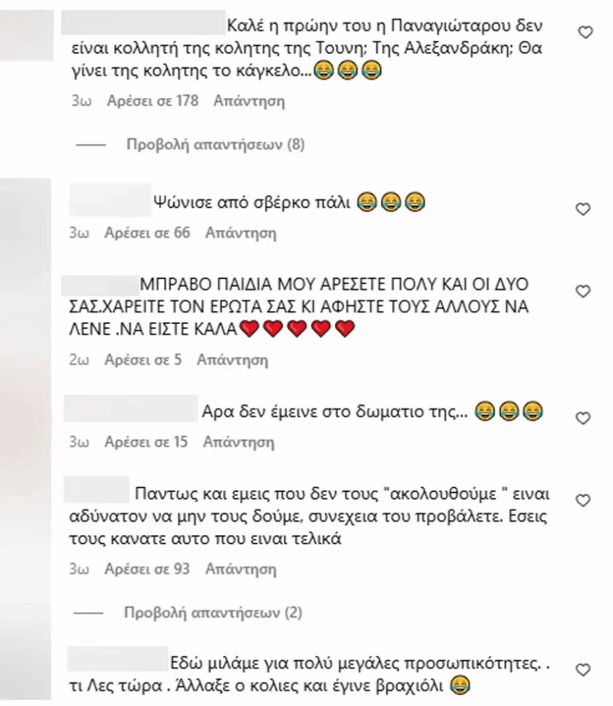 Μάλιστα, αρκετές ήταν οι αντιδράσεις στα social media για το νέο φημολογούμενο ειδύλλιο ανάμεσα σε Ιωάννα Τούνη και Στάθη Σχίζα. Κάποιοι φαίνεται ότι το είδαν με καλό μάτι, άλλοι έγραψαν τις κακίες τους και πολλοί τρόλαραν τις φωτογραφίες.