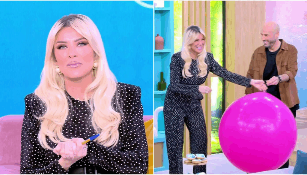 Μπαίνοντας στο πλατό, ο τραγουδιστής έκανε μια ιδιαίτερη έκπληξη στην Κατερίνα Καινούργιου, ένα μεγάλο ροζ μπαλόνι με την παρουσιάστρια αφού χάρηκε ιδιαίτερα, στην συνέχεια να εξομολογείται πως αυτό είναι το αγαπημένο της χρώμα!