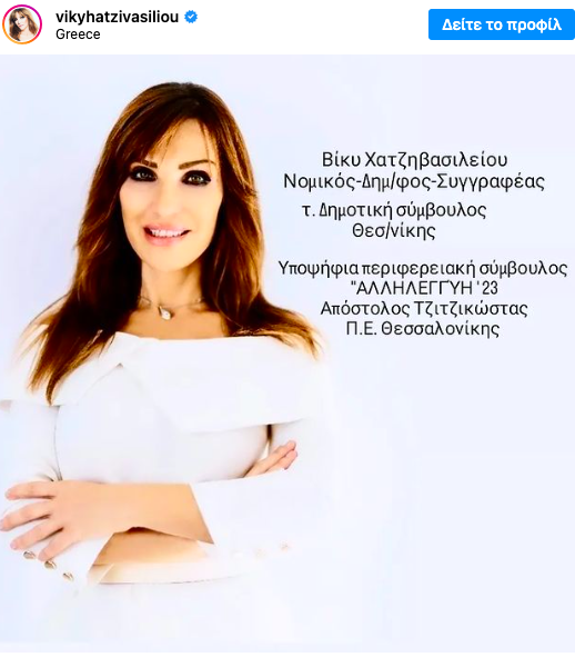 Ειδικότερα, μέσα από μια μακροσκελή ανάρτηση στον προσωπικό της λογαριασμό στο Instagram, η Βίκυ Χατζηβασιλείου θέλησε να εξομολογηθεί τους λόγους που την ώθησαν σε μια τέτοια απόφαση. «Σεβόμενη τη σχέση αλήθειας και ουσίας που τόσα χρόνια μας συνδέει, ήθελα να μοιραστώ μαζί σας (προτού ανακοινωθεί επίσημα) την απόφαση που πήρα μετά από καθαρή σκέψη. Αποδέχτηκα την τιμητική πρόταση του Απόστολου Τζιτζικώστα (ήδη καταξιωμένου περιφερειάρχη Κεντρικής Μακεδονίας), να συμμετέχω στο ψηφοδέλτιό του «ΑΛΛΗΛΕΓΓΎΗ» ως υποψήφια περιφερειακή σύμβουλος στις εκλογές του Οκτωβρίου».