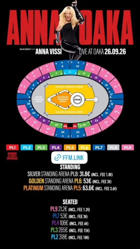 Οι τιμές των εισιτηρίων για την συναυλία της Άννας Βίσση