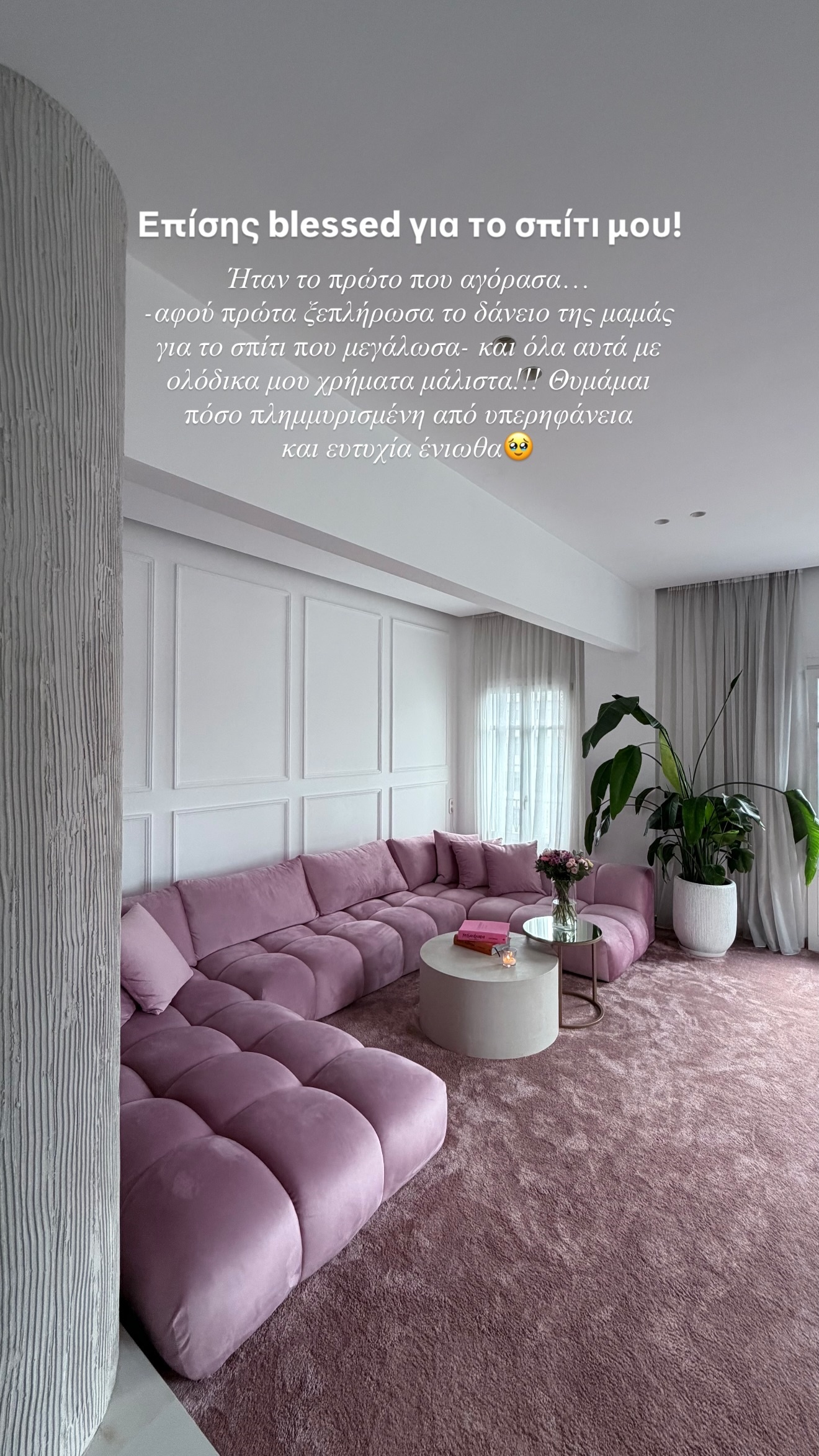 «Blessed για το σπίτι μου. Ήταν το πρώτο που αγόρασα, αφού πρώτα ξεπλήρωσα το δάνειο της μαμάς για το σπίτι που μεγάλωσα, και όλα αυτά με ολόδικα μου χρήματα μάλιστα!!! Θυμάμαι πόσο πλημμυρισμένη από υπερηφάνεια και χαρά ένιωθα».