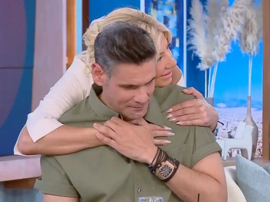Η Φαίη Σκορδά σηκώθηκε τότε από τη θέση της και αγκάλιασε τον Δημήτρη Ουγγαρέζο: «Μία αγκαλίτσα να σου κάνω, μια μεγάλη αγκαλίτσα».