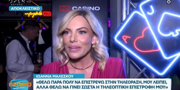 “Σε βραδινό event συνάντησε η κάμερα του Πρωινό Σου Σου την Ιωάννα Μαλέσκου, η οποία απάντησε για τον θέλει να επιστρέψει τηλεοπτικά …”