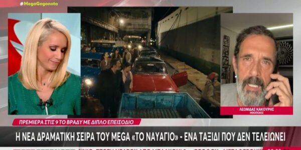 “Στην μεγάλη παραγωγή του MEGA, «Το ναυάγιο» πρωταγωνιστεί ο Λεωνίδας Κακούρης την φετινή τηλεοπτική σεζόν και με αυτή την αφορμή εμφανίστηκε το βράδυ της Κυριακής στο κεντρικό δελτίο ειδήσεων με την Κατερίνα Παναγοπούλου….”